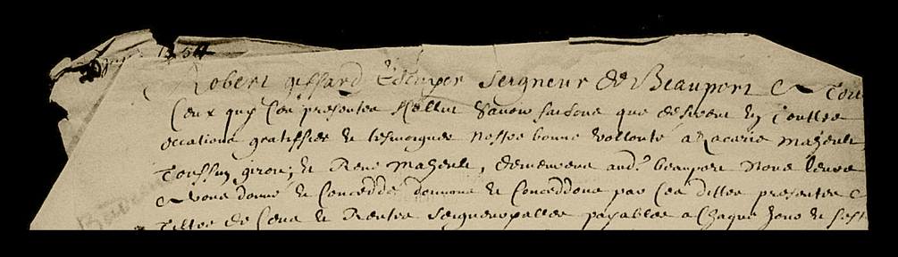 RÉSUMÉ: Concession foncière et gratification par Robert Giffard de terres situées à la seigneurie de Beauport à Zacharie Maheust, Toussaint Giroux et René Maheust
