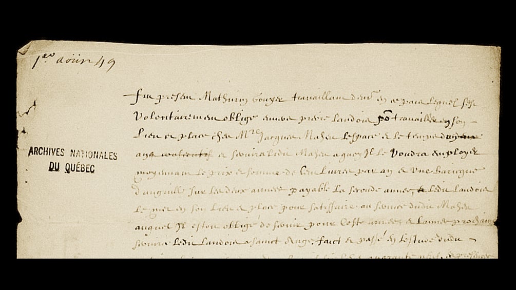 RÉSUMÉ: Marché d'engagement de Mathurin Goyer envers Pierre Landais pour travailler à sa place chez Jacques Maheu