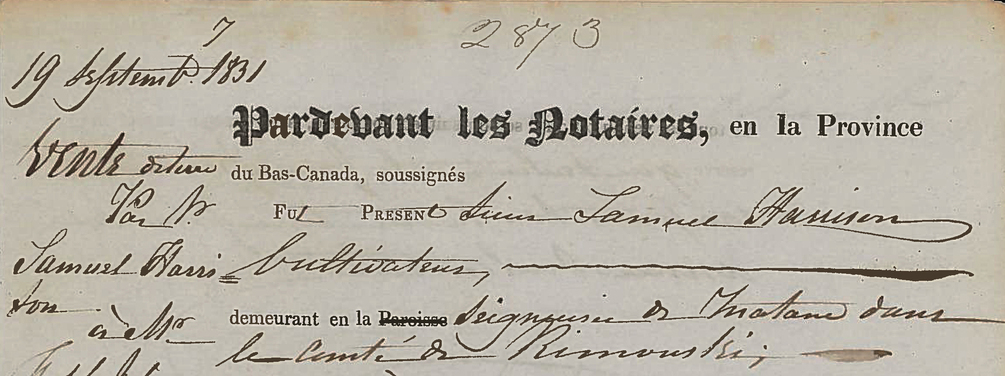 Greffe Joseph Ouellet - 2873 - 19 septembre 1831