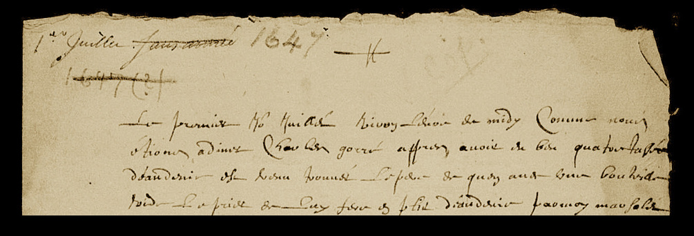 Greffe Claude Lecoustre - minute 1 - juillet-août 1647 - Registry of Claude Lecoustre - folio 1 - july-august 1647