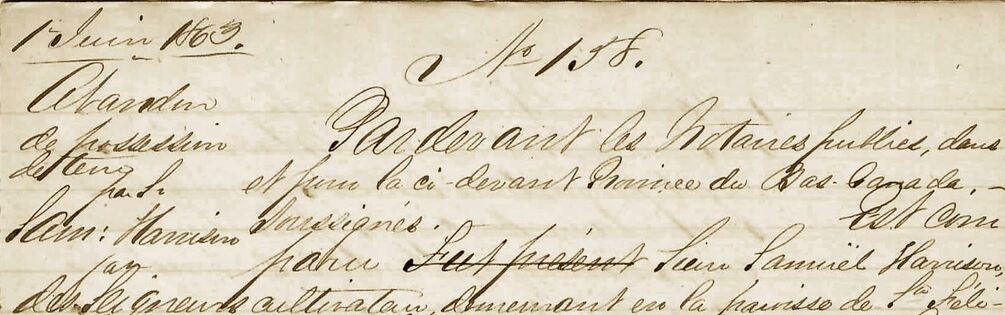 RÉSUMÉ: Abandon de possession de terre par Sieur Samuel Harrison aux seigneurs de Matane