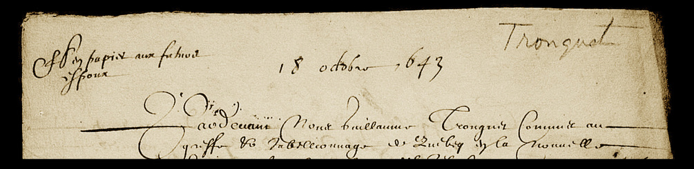 Greffe Guillaume Tronquet - minute 2 - 18 octobre 1643 - Registry of Guillaume Tronquet - folio 2 - 18 october 1643