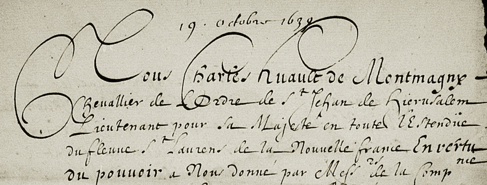 RÉSUMÉ: Concession d'une terre de 20 arpents de superficie en banlieue de Québec de la Compagnie de la Nouvelle France à René Maheu