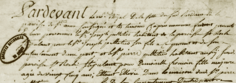 RÉSUMÉ: Contrat de mariage entre Joseph Pelletier et demoiselle Françoise