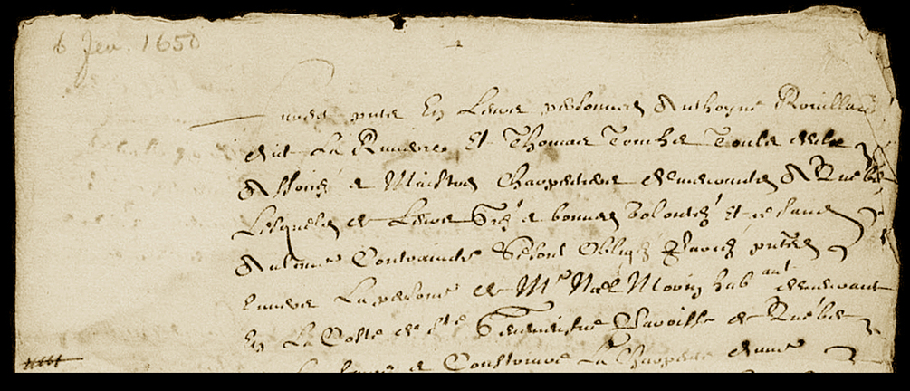 RÉSUMÉ: Marché d'engagement pour la construction d'une charpente de maison pour Noël Morin par Antoine Rouillard et Thomas Touchet